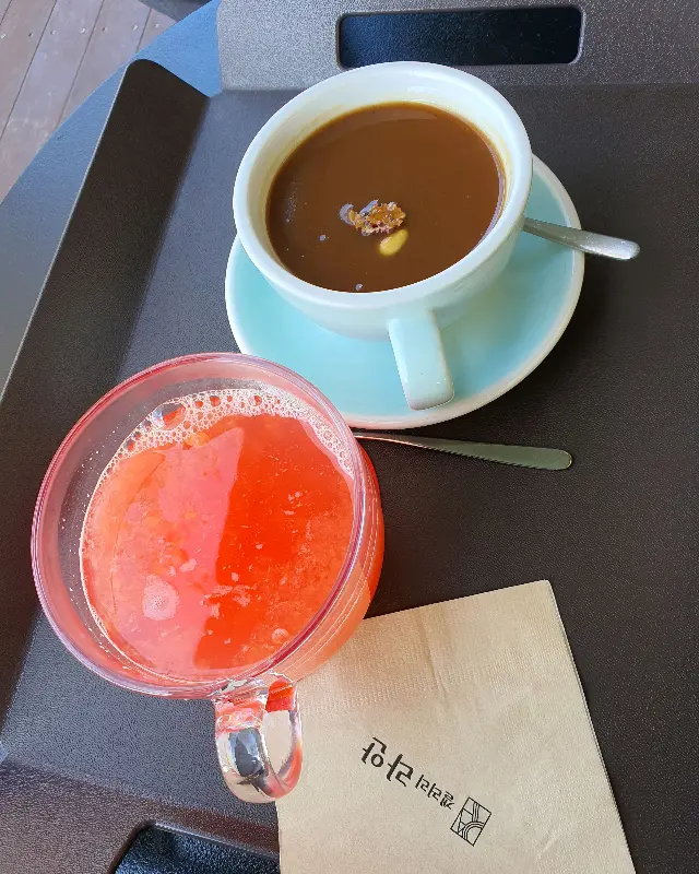 고민 끝에 나는 창가 자리에 자리를 잡았다. 메뉴판을 펼쳐 들고 무엇을 마실까 고민하다가, ‘커피가 맛있다’는 리뷰들을 떠올리며 아이스 아메리카노를 주문했다. 잠시 후, 직원분이 직접 가져다주신 커피는 보기에도 훌륭했다. 투명한 유리잔에 담긴 커피는 얼음과 함께 시원함을 뽐내고 있었고, 은은하게 퍼지는 커피 향은 코끝을 간지럽혔다.