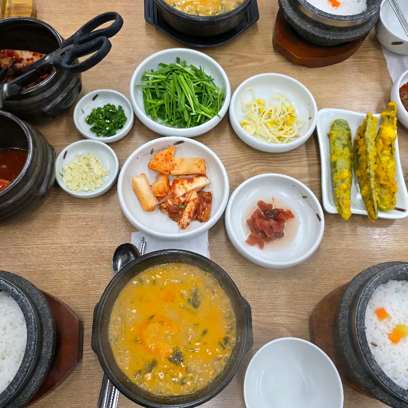 주문 후, 얼마 지나지 않아 밑반찬들이 테이블 위에 차려졌다. 깍두기, 배추김치, 어리굴젓, 마늘, 청양고추, 부추 등 푸짐한 구성이었다. 특히 눈길을 끌었던 것은 어리굴젓이었다. 큼지막한 굴이 듬뿍 들어간 어리굴젓은 보기만 해도 입맛을 돋우었다. 젓갈 특유의 쿰쿰한 향과 짭짤하면서도 시원한 맛이 일품이었다.