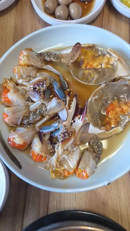 가장 먼저 간장게장부터 맛을 봤다. 젓가락으로 게딱지를 살짝 들어 올리니, 주황색 알이 꽉 찬 모습이 드러났다. 감탄사가 절로 나왔다. 게딱지에 붙은 게살을 조심스럽게 긁어모아 밥 위에 얹어 한 입 가득 넣었다. 입 안 가득 퍼지는 짭짤하면서도 달콤한 맛. 신선한 게살은 입 안에서 부드럽게 녹아내렸다. 짜지 않고 은은한 단맛이 감도는 간장 양념은 밥과 환상적인 조화를 이루었다.