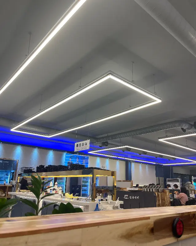 가게 문을 열고 들어서자, 넓고 쾌적한 공간이 펼쳐졌다. 예전의 작고 소박했던 모습은 온데간데없이, 현대적인 감각으로 깔끔하게 정돈된 인테리어가 인상적이었다. 천장에는 사각형의 독특한 조명이 은은하게 빛나고 있었다. 테이블 간 간격도 넉넉해서 편안하게 식사를 즐길 수 있을 것 같았다.
