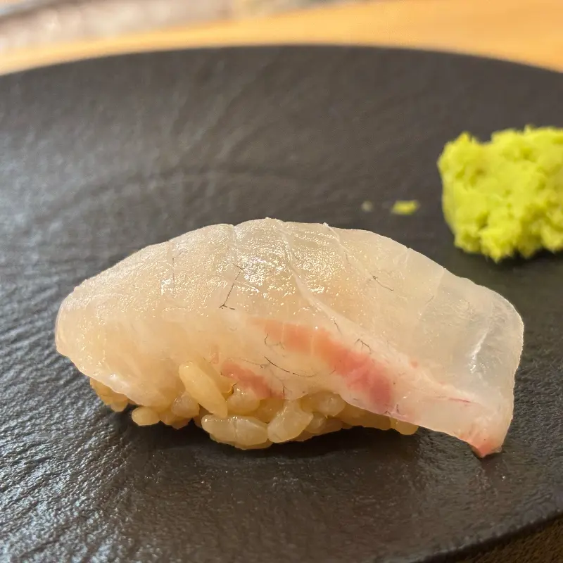 다음으로는 기다리고 기다리던 초밥이 나왔다. 셰프님은 초밥을 쥐어주시면서 어떤 생선을 사용했는지, 어떻게 먹으면 더 맛있는지 친절하게 설명해주셨다. 숙성된 흰살 생선은 감칠맛이 뛰어났고, 붉은 살 생선은 깊은 풍미를 자랑했다. 밥알의 온도와 식감 또한 완벽했다. 입안에서 흩어지는 밥알은 혀를 부드럽게 감싸 안았고, 생선과의 조화는 그야말로 환상적이었다.