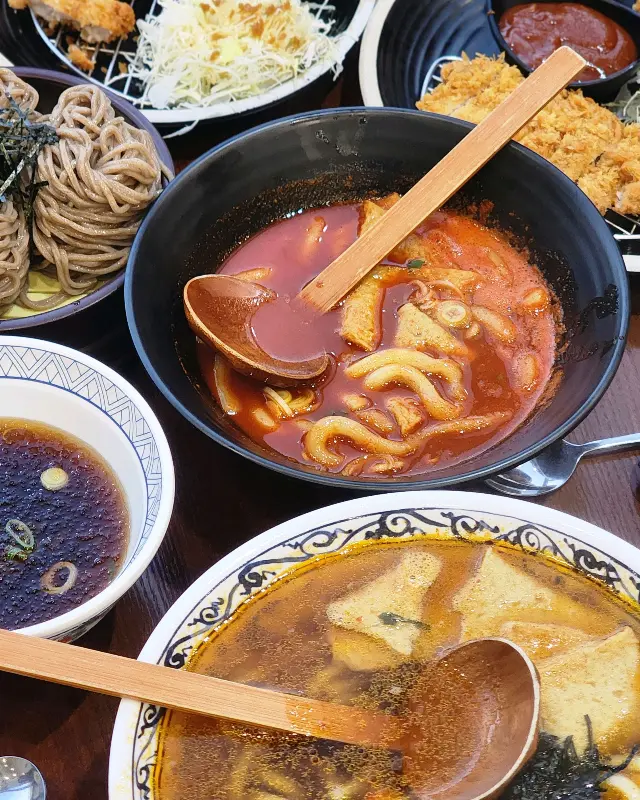 자리를 잡고 앉아 메뉴판을 펼쳐 들었다. 다양한 소바와 우동 메뉴들이 눈길을 사로잡았다. 무엇을 먹을까 고민하다가, 이곳의 대표 메뉴라는 삼동정식(소바+돈까스 세트)과 따뜻한 국물이 땡겨 얼큰우동 세트를 주문했다. 떡볶이도 맛있다는 후기가 많아 궁금함을 참지 못하고 함께 주문했다.