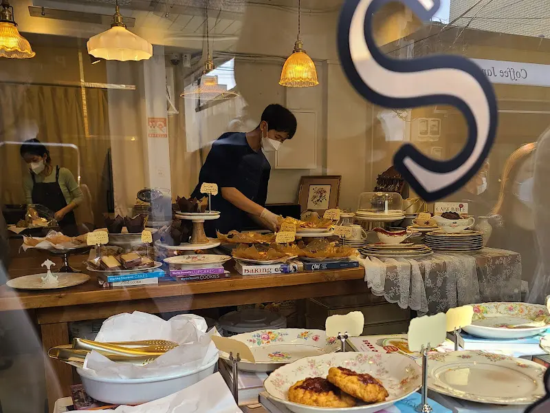 가게는 생각보다 아담했다. 하얀색 외관에 커다란 ‘S’자 로고가 눈에 띄었다. 통유리 너머로 보이는 스콘들의 향연은, 마치 잘 꾸며진 디저트 전시관을 보는 듯했다. 갓 구워져 나온 스콘들이 테이블 위에 가득 놓여 있었고, 직원분들은 분주하게 스콘을 포장하고 있었다. 앤티크한 가구들과 따뜻한 조명이 어우러져, 아늑하면서도 편안한 분위기를 자아냈다.