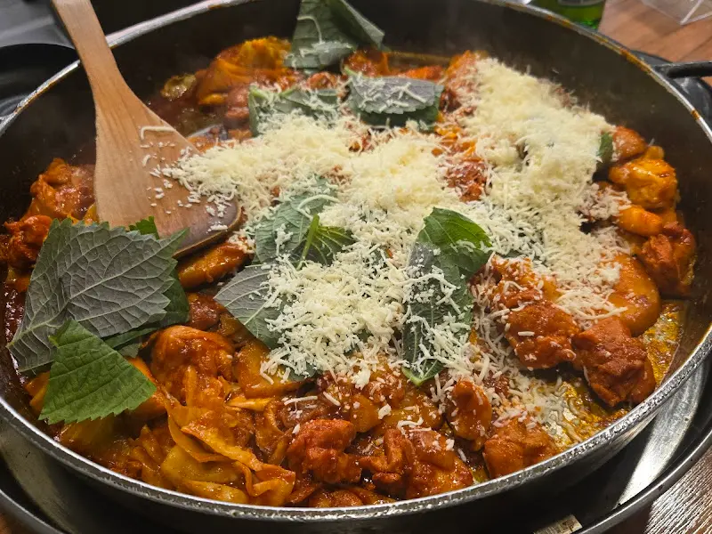 드디어 기다리고 기다리던 눈꽃 닭갈비가 나왔다. 붉은 양념으로 버무려진 닭갈비 위에 마치 겨울 풍경처럼 하얀 눈꽃 치즈가 덮여 있었다. 깻잎이 듬뿍 올라가 향긋한 향을 더했다. 닭갈비는 이미 조리되어 나온다는 점이 마음에 들었다. 옷에 튈 걱정 없이 바로 먹을 수 있으니 말이다. 은은하게 풍기는 카레 향이 식욕을 자극했다.