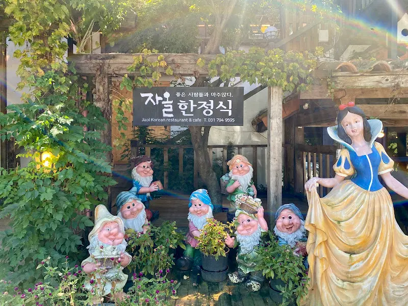 도착하기 전부터 설렘이 가득했다. 후기를 통해 접한 ‘자올’은 단순히 맛있는 음식을 제공하는 곳을 넘어, 아름다운 자연 속에서 편안한 휴식을 즐길 수 있는 공간처럼 느껴졌기 때문이다. 특히, 눈 내리는 날의 풍경이 그렇게 아름답다고 하니, 언젠가 꼭 다시 방문하고 싶다는 생각을 했다. 넓은 주차장에 차를 대고, 식당으로 향하는 길은 마치 숲 속 산책로를 걷는 듯했다. 싱그러운 나무들과 알록달록한 꽃들이 반겨주는 듯했고, 맑은 공기가 폐 속 깊숙이 스며드는 기분이었다.