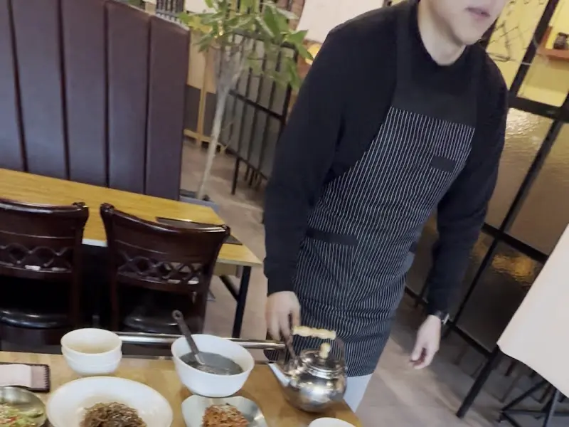 현대시장 근처, 깔끔하게 정돈된 외관이 눈에 띄는 남도한상. 주차장이 마련되어 있어 편안하게 차를 댈 수 있었습니다. 어르신들을 모시고 오는 가족 단위 손님들에게는 특히 반가운 점일 겁니다. 매장 안으로 들어서자 넓고 쾌적한 공간이 펼쳐졌습니다. 은은한 조명 아래 놓인 테이블들은 간격을 넉넉하게 유지하고 있어, 다른 손님들의 방해 없이 오롯이 식사에 집중할 수 있는 분위기였습니다. 테이블 위에는 따뜻한 물이 담긴 주전자와 찻잔이 가지런히 놓여 있었습니다. 자리에 앉자마자 따뜻한 물 한 잔을 들이켜니, 긴장되었던 마음이 스르륵 풀리는 듯했습니다.