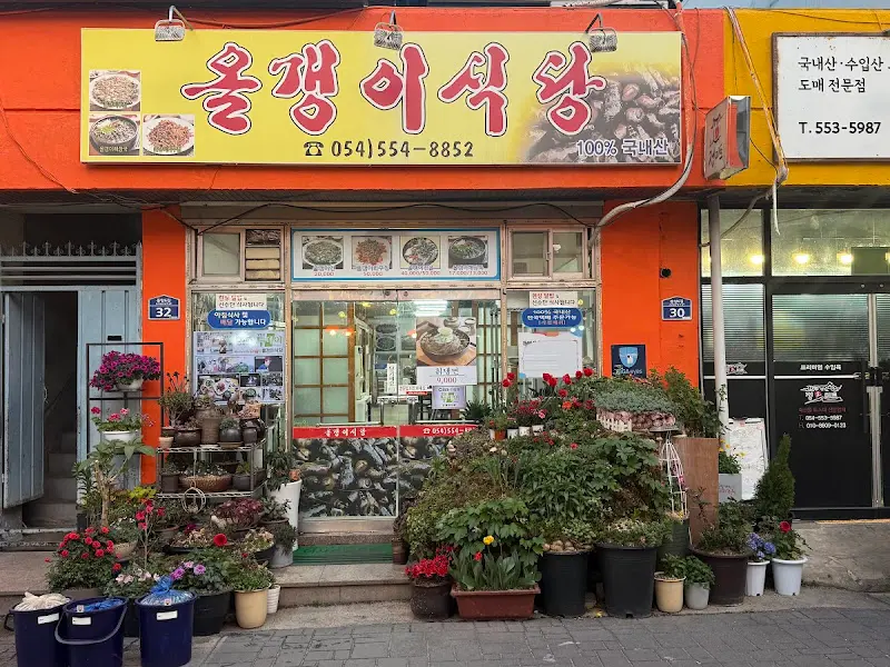 네비게이션이 가리키는 곳으로 향하니, 붉은색 간판이 눈에 띄는 아담한 식당 하나가 나타났다. 바로 오늘 나의 발길을 이끈 “올갱이 식당”이었다. 식당 앞에는 화분들이 빼곡하게 놓여 있어, 마치 시골 할머니 댁에 방문한 듯한 푸근한 느낌을 주었다. 낡은 듯 정감 있는 외관에서부터 느껴지는 세월의 흔적은, 이곳이 오랜 시간 동안 많은 사람들에게 사랑받아온 맛집임을 짐작하게 했다. 가게 앞에 즐비하게 놓인 화분들은 하나같이 건강하게 피어올라 생기를 뽐내고 있었다.
