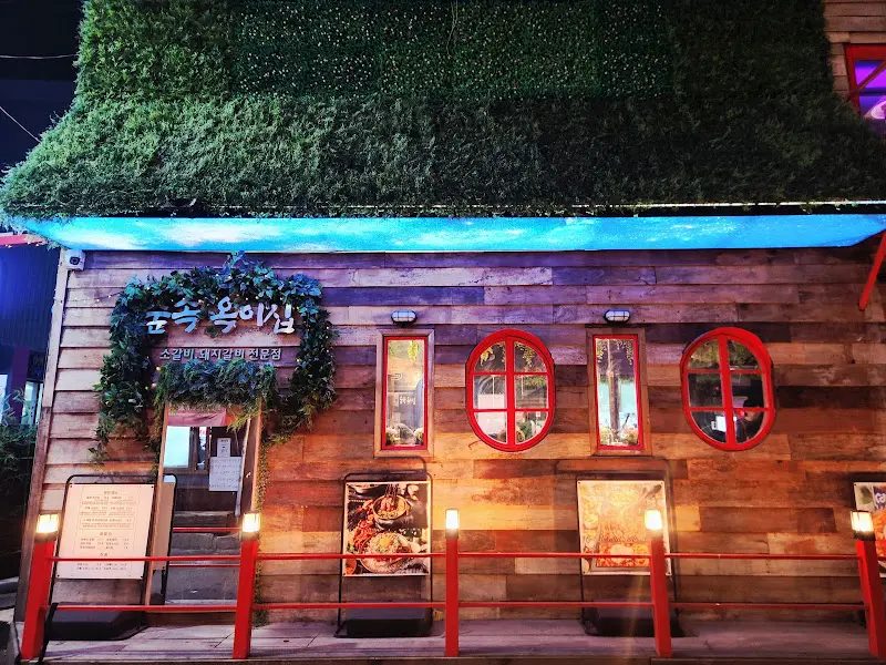 의정부역 3번 출구에서 나와 몇 걸음 채 걷지 않아, 마치 동화 속에 나올 법한 외관의 “숲속옥이집”이 눈에 들어왔다. 낡은 듯하면서도 정감 가는 나무 외벽에 초록색 식물들이 조화롭게 어우러져 있었고, 은은한 조명이 따스함을 더했다. 마치 비밀 정원으로 들어가는 듯한 설렘을 안고 문을 열었다.