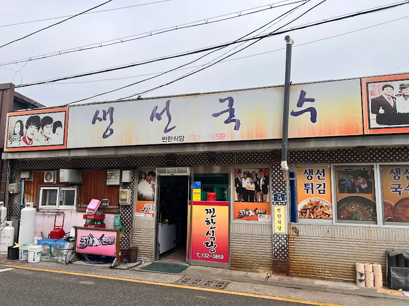 네비게이션이 가리키는 좁은 길을 따라 굽이굽이 들어가니, 마치 시간이 멈춘 듯한 풍경이 눈앞에 펼쳐졌다. 낮은 돌담, 낡은 간판, 그리고 그 앞에 옹기종기 모여 앉아 담소를 나누는 어르신들. 마치 오래된 영화 속 한 장면처럼 정겨운 모습이었다. 드디어 찐한식당이 눈에 들어왔다. 허름한 외관과는 달리, 식당 안은 이미 사람들로 북적였다. 벽에는 백종원 3대 천왕, 맛있는 녀석들 등 방송 출연 사진들이 빼곡하게 붙어있어 기대감을 한껏 고조시켰다.