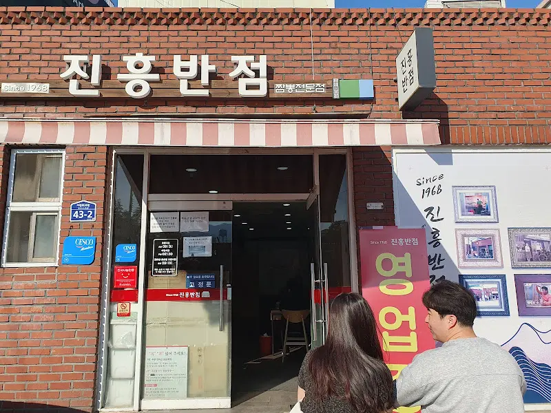네비게이션에 주소를 찍고 차를 몰았다. 굽이굽이 골목길을 지나, 드디어 붉은 벽돌 건물이 눈에 들어왔다. ‘진흥반점’이라는 간판이 정겹게 맞아주는 듯했다. 1968년부터 이어져 온 노포의 아우라가 느껴지는 외관이었다. 사진에서 봤던 것보다 훨씬 더 운치 있었다. 건물 외벽에는 세월의 흔적이 고스란히 느껴지는 빛바랜 사진들이 걸려 있었다. 그 옆으로 빨간 글씨로 큼지막하게 쓰여진 ‘오늘의 짬뽕’이라는 문구가 시선을 사로잡았다. 짬뽕에 대한 자부심이 느껴지는 문구였다.