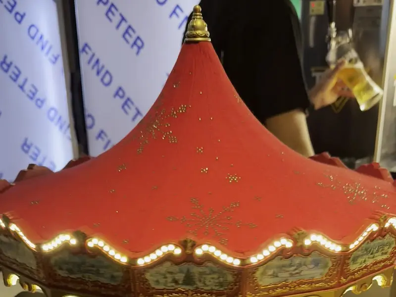 문을 열자, 따스한 기운이 온몸을 감쌌습니다. 붉은색 캐노피가 씌워진 회전목마 모형이 가장 먼저 눈에 들어왔는데, 촘촘히 박힌 전구들이 반짝이며 크리스마스 분위기를 한층 고조시키는 듯했습니다. 에서 보았던 그 붉은 캐노피는 실제로 보니 훨씬 더 화려하고 몽환적인 느낌이었어요. 마치 동화 속 세계로 빨려 들어온 기분이랄까요. 은은하게 울려 퍼지는 캐럴은 잊고 지냈던 어린 시절의 설렘을 되살려주는 듯했습니다.