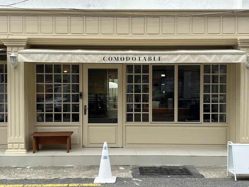 하얀색 차양막 아래 “COMODOTABLE”이라고 쓰여 있는 간판은 давното 마치 유럽의 작은 카페에 온 듯한 느낌을 давното 주었다. давното 커다란 창문 너머로 보이는 давното 따뜻한 조명과 давното 아늑한 분위기가 давннн меня давното 더욱 설레게 만들었다. давното 사진에서 보았던 그대로, давното 아담하고 예쁜 공간이었다.