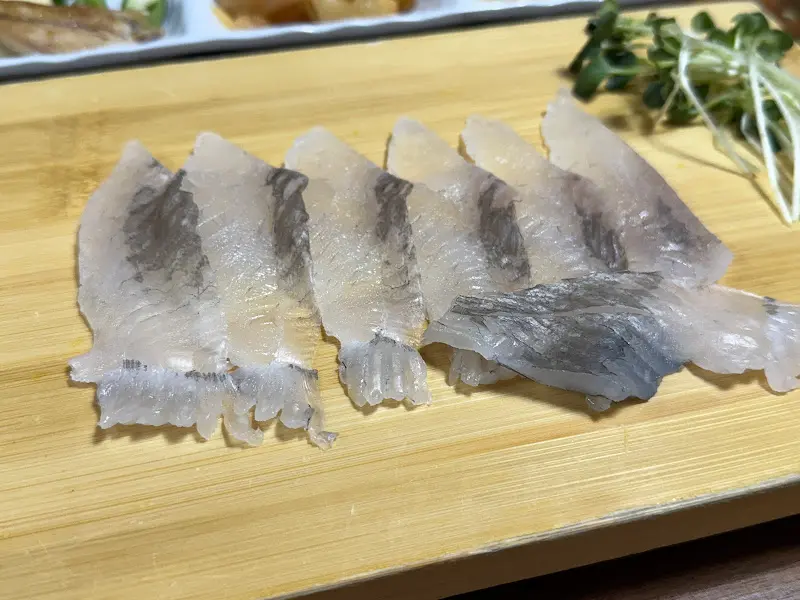 가장 먼저 눈에 띈 것은 역시 회였다. 두툼하게 썰린 회는 윤기가 자르르 흘렀고, 보기만 해도 신선함이 느껴졌다. 한 점 입에 넣으니, 쫄깃하면서도 부드러운 식감이 입안 가득 퍼져 나갔다. 신선한 바다의 향과 함께 느껴지는 감칠맛은 정말 훌륭했다. 특히, 지느러미살까지 함께 썰어 넣어주시는 센스에 감탄했다. 꼬들꼬들한 지느러미살은 씹을수록 고소한 맛이 더해져, 회의 풍미를 더욱 깊게 만들어주었다.