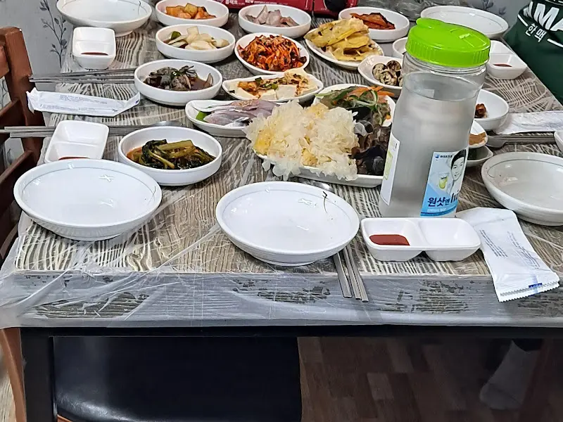 주문 후 얼마 지나지 않아, 밑반찬들이 하나둘씩 테이블 위에 놓이기 시작했다. 쟁반 가득 차려진 반찬들을 보고 입이 떡 벌어졌다. 김치, 나물, 샐러드, 멸치볶음 등 종류도 다양했지만, 무엇보다 엄마가 해주는 듯한 정갈함이 느껴졌다. 특히 오랜만에 보는 소라 반찬이 눈에 띄었다. 꼬들꼬들한 식감과 짭짤한 맛이 일품이었다. 반찬 하나하나가 자극적이지 않고, 재료 본연의 맛을 살린 건강한 맛이었다.
