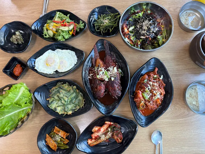정갈하게 담긴 열 가지가 넘는 반찬들은 하나하나 정성이 느껴지는 맛이었다. 짭짤한 간장게장, 매콤한 제육볶음, 아삭한 콩나물무침, 향긋한 깻잎장아찌 등 다채로운 맛의 향연에 젓가락을 쉴 새 없이 움직였다. 특히, 쌈 채소와 함께 제공된 제육볶음은 매콤달콤한 양념이 밥도둑이 따로 없었다. 제육볶음은 무한리필이라고 하니, 인심 좋은 사장님의 넉넉한 인심을 엿볼 수 있었다.