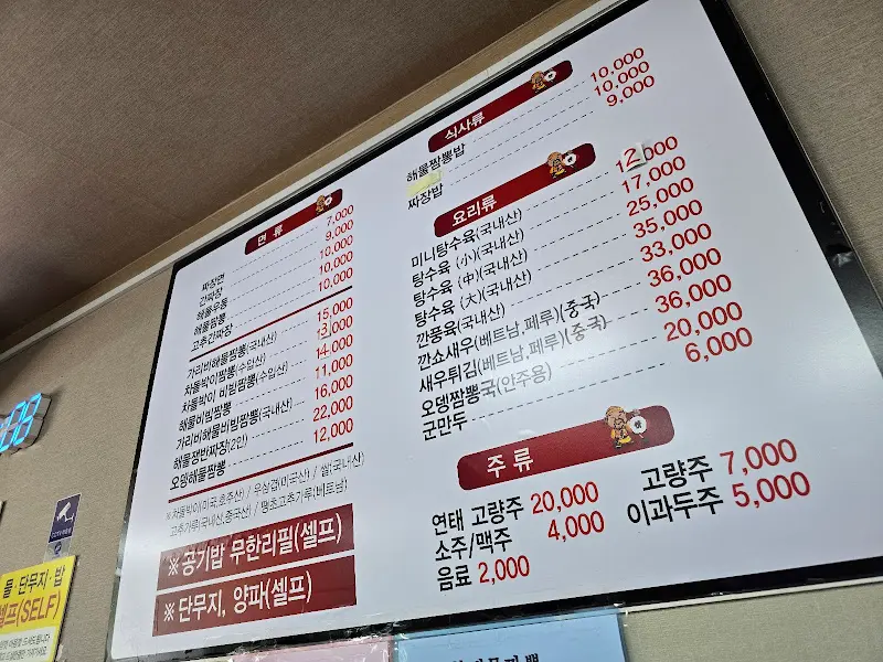 겉으로 보기에는 소박한 동네 중국집. 길가에 덩그러니 놓인 듯한 모습에 처음에는 살짝 망설였다. 하지만 문을 열고 들어서는 순간, 활기찬 기운이 나를 반겼다. 점심시간이라 그런지 홀 안은 손님들로 가득했고, 혼자 온 듯한 기사님들의 모습도 눈에 띄었다. 마치 시간이 멈춘 듯한 정겨운 분위기가 마음을 편안하게 했다.