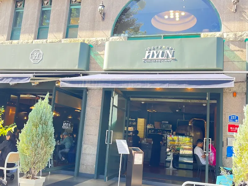 어린이대공원 정문 바로 앞에 위치한 HYUN은 멀리서도 눈에 띄는 외관을 자랑했다. 짙은 녹색 간판에 쓰인 세련된 폰트의 상호명이 인상적이었고, 통창 너머로 보이는 따뜻한 조명과 고급스러운 인테리어가 기대감을 한껏 높였다. 레스토랑 앞에는 작은 입간판이 세워져 있었는데, 오늘의 추천 메뉴와 함께 아이들을 위한 특별 메뉴도 준비되어 있다는 안내가 적혀 있었다. 가족 단위 손님을 배려하는 세심함이 느껴져 더욱 마음에 들었다.