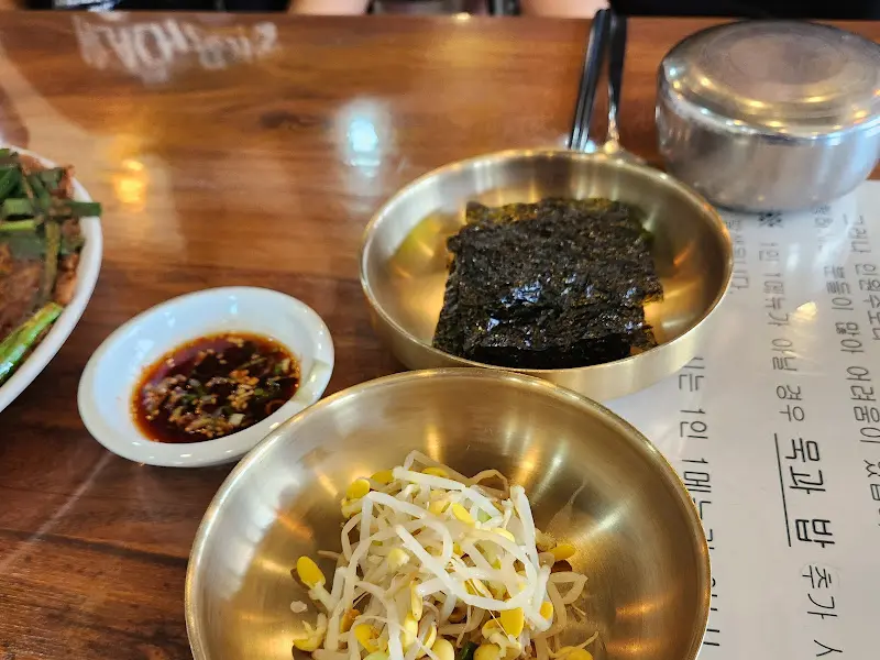 잠시 후, 자리가 마련되고 곧바로 밑반찬이 나왔다. 콩나물, 김, 미역줄기, 깍두기 등 소박하지만 정갈한 반찬들이었다. 특히 구운 김은 윤기가 자르르 흐르는 것이, 보기만 해도 군침이 돌았다. 짭짤하면서도 고소한 맛이 밥도둑이 따로 없었다. 김이 맛있어서 추가로 구입하는 사람들도 있다고 하니, 그 인기를 실감할 수 있었다.