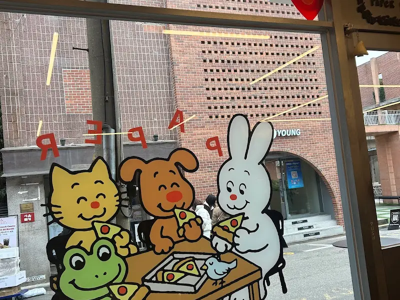 가게 유리창에 그려진 귀여운 그림들이 시선을 사로잡는다.