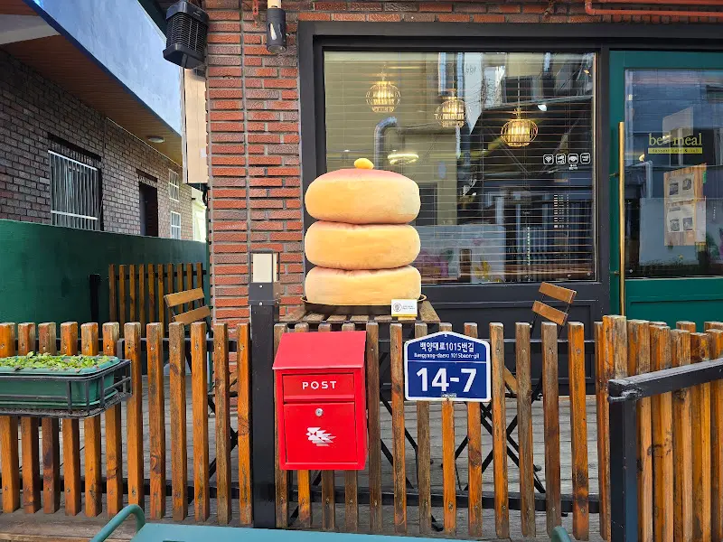 가게 앞에 놓인 깜찍한 빨간 우체통과 앙증맞은 팬케이크 모형이 시선을 사로잡았다. 나무 울타리 너머로 보이는 따뜻한 조명은, 마치 비밀 정원에 들어서는 듯한 기분을 선사했다. 셔터를 누르지 않을 수 없는 매력적인 외관이었다. 은 마치 동화 속에 나올 법한 가게의 첫인상을 고스란히 담고 있었다.