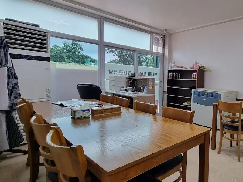 문을 열고 들어서자, 예상대로 편안한 분위기가 나를 맞이했다. 커다란 창문 너머로 보이는 풍경은 소박했지만, 왠지 모르게 마음이 평온해졌다. 커다란 에어컨이 시원한 바람을 뿜어내고 있었고, 나무 테이블과 의자는 오랜 시간 동안 많은 사람들의 이야기를 들어온 듯 묵직하게 자리를 지키고 있었다. 마치 시골 할머니 댁에 놀러 온 듯한 푸근함이 느껴졌다. 에서 보이는 것처럼, 테이블은 넓고 넉넉해서 여럿이 함께 와도 충분하겠다는 생각이 들었다.
