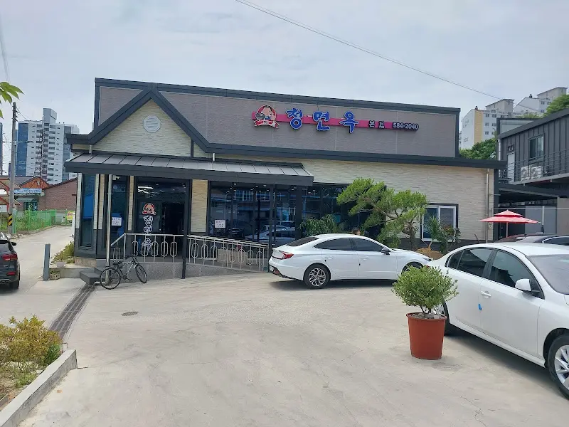 가게 앞에 도착하니 넓은 주차장이 눈에 띄었다. 평일 점심시간인데도 꽤 많은 차들이 주차되어 있는 걸 보니 역시 맛집은 맛집인가 보다. 외관은 깔끔하고 정돈된 느낌이었다. 푸른 하늘 아래, ‘청명가든’이라는 간판이 선명하게 빛나고 있었다. 넉넉한 주차 공간 덕분에 주차 스트레스 없이 편안하게 식사를 즐길 수 있겠다는 생각이 들었다.
