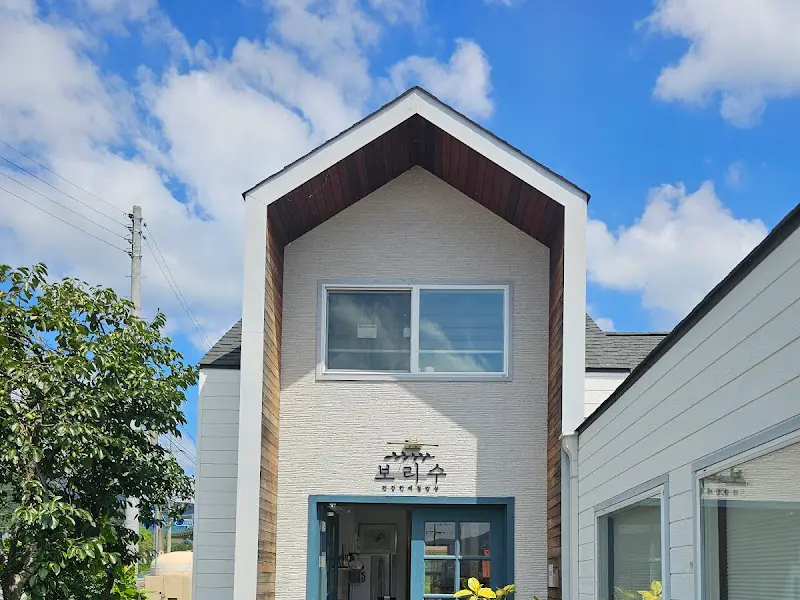 푸른 하늘 아래 그림처럼 펼쳐진 풍경 속에 자리 잡은 ‘보리수’는, 마치 시골 할머니 댁에 놀러 온 듯한 따스함으로 가득했다. 건물 외관은 현대적인 감각과 전통적인 멋이 조화롭게 어우러져 있었는데, 하얀 벽면에 포인트로 들어간 나무색과 푸른색 문이 세련된 느낌을 더했다. 에서 보았던 바로 그 모습이었다. 주변에는 형형색색의 꽃들이 만개해 있어, 식당을 들어서기도 전에 이미 마음은 평온함으로 가득 찼다.