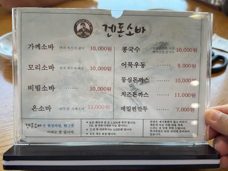 식사를 마치고 계산을 하려고 보니, 겐돈소바는 아쉽게도 상품권은 받지 않는다고 했다. 가격은 소바 10,000원, 콩국수 10,000원으로, 저렴한 편은 아니었지만, 맛과 양을 고려하면 충분히 만족스러웠다. 특히 친절한 직원들의 서비스는 겐돈소바의 또 다른 매력이었다.