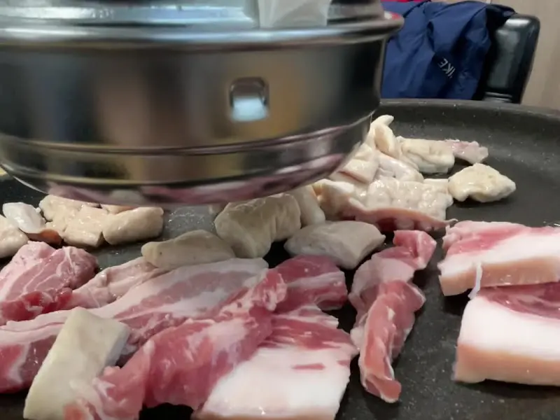 드디어 기다리고 기다리던 곱창구이가 등장했다. 불판 위에 올려진 곱창은 신선함이 느껴지는 선홍빛을 띠고 있었다. 직원분들이 직접 구워주시는 덕분에, 편안하게 익어가는 모습을 지켜볼 수 있었다. 노릇노릇하게 익어가는 곱창의 모습은 그야말로 황홀경이었다.