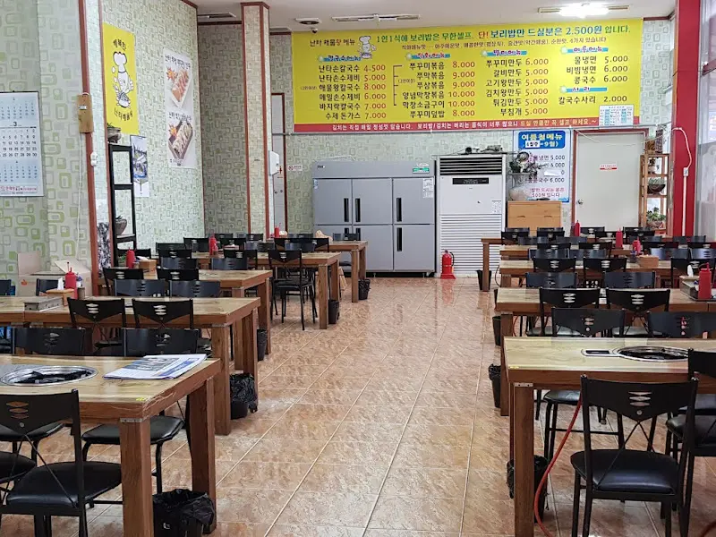 오랜만에 떠나온 연천 여행, 굽이굽이 이어진 길을 따라 드라이브를 즐기다 보니 어느덧 점심시간이 훌쩍 넘어버렸다. 배꼽시계가 쉴 새 없이 울려대는 통에, 얼른 든든하게 배를 채울 만한 곳을 찾아야 했다. 마침 눈에 띈 간판, ‘난타해물왕칼국수·쭈꾸미’. 칼칼한 해물 칼국수와 매콤한 쭈꾸미의 조합이라니, 생각만 해도 입안에 침이 고였다. 망설일 틈도 없이 차를 돌려 가게 앞에 멈춰 섰다.