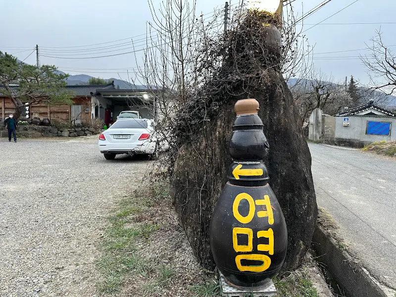 가게는 생각보다 훨씬 정감 있는 분위기였다. 낡은 듯하면서도 깔끔하게 정돈된 외관은 마치 시골 할머니 댁에 놀러 온 듯한 느낌을 주었다. 특히 장독대가 늘어선 풍경은 어린 시절 추억을 떠올리게 하며 마음을 편안하게 해 주었다. 이미지에서 보았던 ‘여명가든’이라고 쓰인 큼지막한 조형물이 친근하게 느껴졌다.