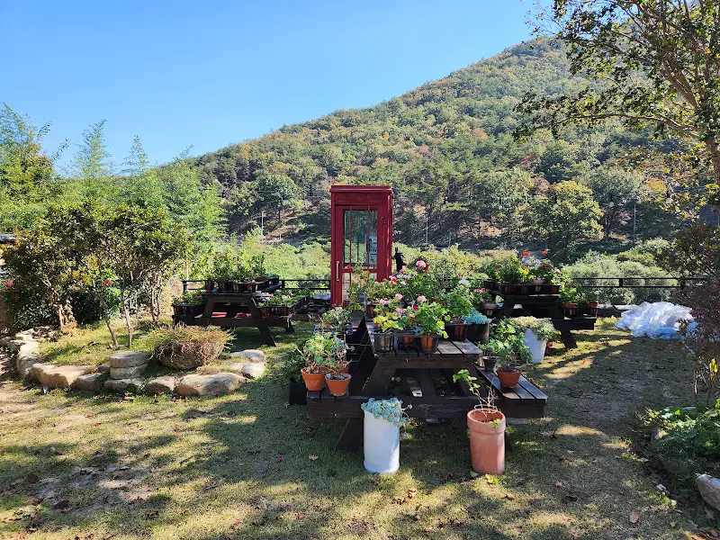 드디어 도착한 ‘청솔’은 예상보다 훨씬 아름다운 곳이었다. 이미지 속에서 보았던 것보다 훨씬 더 자연과 조화를 이루고 있었다. 가게 앞에 펼쳐진 정원은 아기자기하게 꾸며져 있었고, 붉은색 공중전화 박스가 포인트가 되어 마치 동화 속에 들어온 듯한 느낌을 주었다. 맑은 하늘 아래 푸른 잔디와 형형색색의 꽃들이 어우러진 모습은 그 자체로 힐링이었다.
