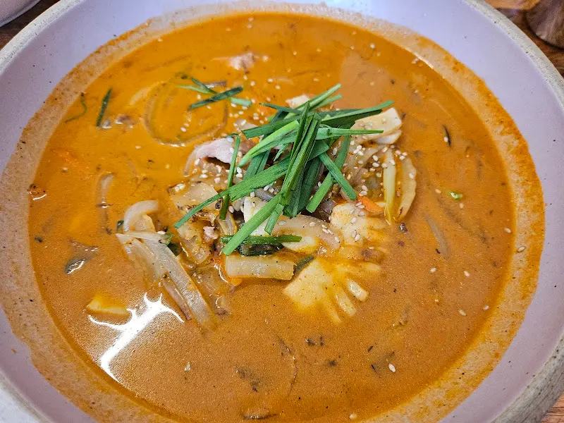 야끼우동 외에 또 다른 인기 메뉴는 바로 홍짬뽕이다. 사진을 보니, 붉은 국물 위에 싱싱한 해산물과 채소가 듬뿍 올려져 있었다. 짬뽕 국물은 보기만 해도 얼큰해 보였다. 면 대신 밥으로 변경도 가능하다고 하니, 취향에 따라 선택하면 될 것 같다. 특히 쌀쌀한 날씨에는 뜨끈한 홍짬뽕 국물이 제격일 듯하다.