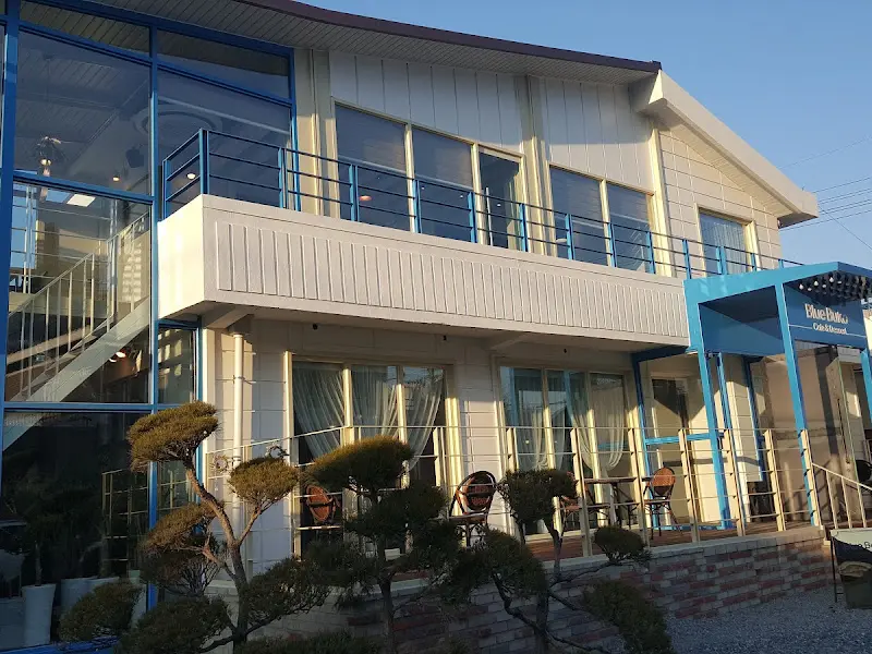 넓은 주차장에 차를 세우고, 카페로 향하는 발걸음은 설렘으로 가득 찼다. 푸른색 외관이 눈에 띄는 건물을 마주하니, 마치 지중해 어느 해변가에 와있는 듯한 기분이 들었다. 세련되고 감각적인 인테리어는 첫인상부터 강렬한 인상을 남겼다.