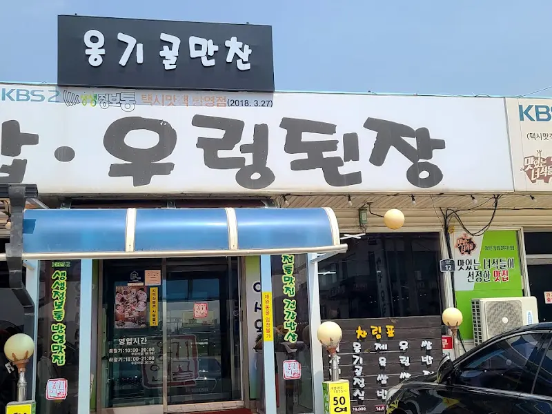 드라이브 코스로도 안성맞춤인 47번 국도를 따라 달리다 보니 어느새 옹기골 만찬 간판이 눈에 들어왔다. 멀리서도 한눈에 띄는 커다란 간판에는 “쌈밥·우렁된장”이라는 문구가 큼지막하게 적혀 있었다. KBS 방송에도 소개된 맛집임을 알리는 문구도 함께였다. 파란 하늘 아래 하얀색 간판이 왠지 모르게 정겹게 느껴졌다.