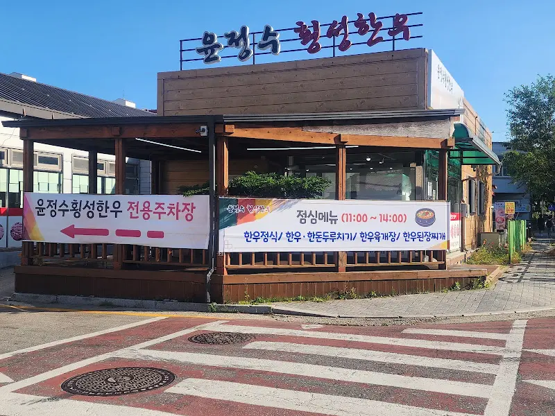 네비게이션이 안내하는 대로 한적한 길을 따라 들어가니, 마치 숨겨진 보석처럼 아늑한 식당이 눈에 들어왔다. “문정숙 횡성한우”라는 간판이 크게 걸려 있었지만, 오늘 우리의 목표는 토종닭 해신탕이었기에 망설임 없이 안으로 향했다. 넓은 주차장이 마련되어 있어 편안하게 차를 세울 수 있었다. 푸른 하늘 아래, 나무로 지어진 듯한 외관은 정겨운 분위기를 자아냈다.