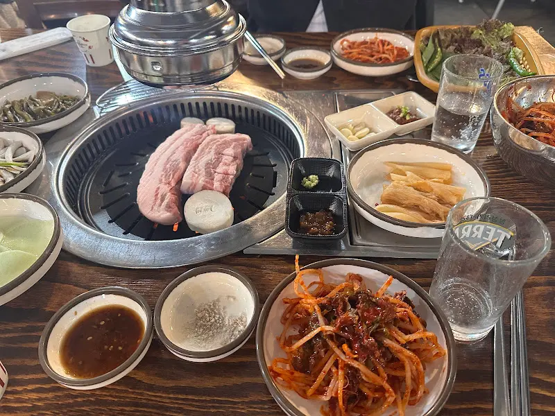 이미지 속에서 풍성하게 담겨있는 쌈 채소 바구니는 신선함을 가득 담고 있었고, 붉은 양념에 버무려진 콩나물 무침은 보기만 해도 입맛을 돋우었다. 깊은 맛을 자랑하는 된장찌개는 푸짐한 건더기와 함께 뜨겁게 끓여져 나왔고, 불판 위에서 지글거리는 삼겹살은 윤기가 자르르 흘렀다. 특히 미나리와 함께 구워 먹는 모습은 그 향긋한 풍미를 상상하게 만들었다.
