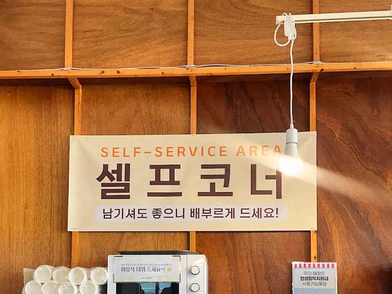 주문을 마치고 가게 안을 둘러보니, 한쪽 벽면에 “남기셔도 좋으니 배부르게 드세요”라는 문구가 눈에 띄었다. 사장님의 넉넉한 인심이 느껴지는 문구였다. 게다가 아기를 위한 이유식을 데울 수 있는 전자레인지까지 마련되어 있는 것을 보고, 세심한 배려에 감동했다.