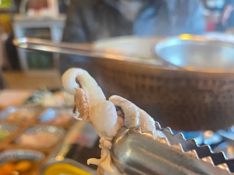하지만 모든 것이 아쉬웠던 것만은 아닙니다. 여전히 ‘서해포구해물촌’의 새조개는 신선했고, 특유의 감칠맛은 변함없이 훌륭했습니다. 갓 잡아 올린 듯한 싱싱함이 입안 가득 퍼져 나갔죠. 뜨거운 육수에 살짝 데쳐 먹는 새조개의 부드러운 식감은, 마치 입안에서 사르르 녹아내리는 듯했습니다. 곁들여 나오는 채소들과 함께 먹으니, 그 맛이 더욱 풍성하게 느껴졌습니다. 특히, 쌉쌀한 맛이 매력적인 해초와 함께 먹으니, 새조개의 단맛이 더욱 도드라지는 듯했습니다.