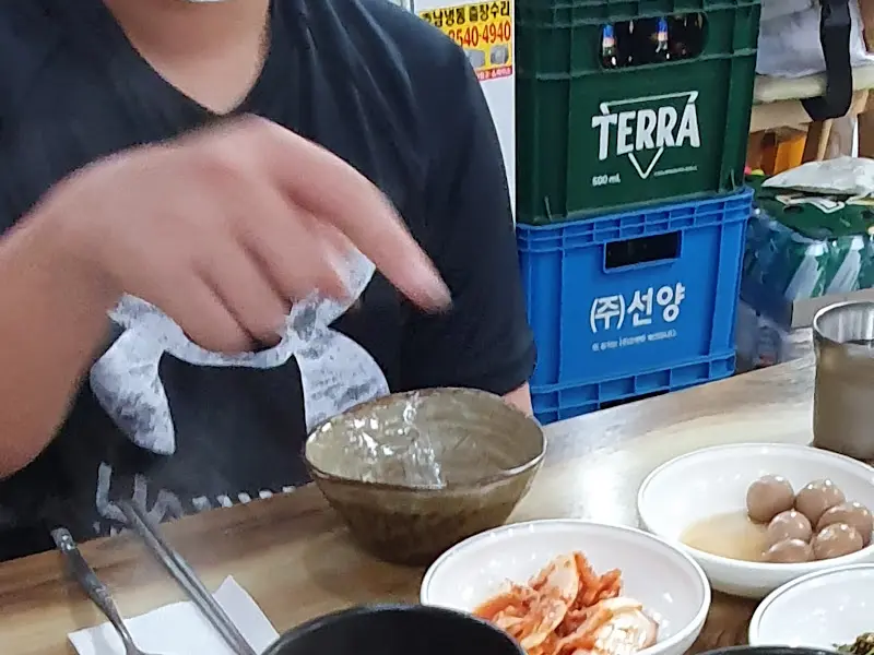 든든하게 배를 채우고 나니, 주변이 눈에 들어오기 시작했다. 밥상골은 아주 깔끔한 분위기는 아니었지만, 오래된 음식점 특유의 푸근함이 느껴졌다. 벽에는 손님들이 남긴 낙서와 메모들이 가득 붙어 있었고, 테이블 곳곳에는 세월의 흔적이 묻어 있었다. 하지만 오히려 그런 점들이 밥상골의 매력을 더하는 듯했다.