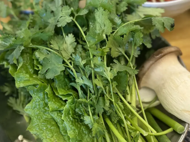 자리에 앉자마자 눈에 들어온 것은 푸짐하게 차려진 기본 찬들이었다. 농장에서 직접 가져온 듯 싱싱한 쌈 채소들이 탐스러운 자태를 뽐내고 있었다. 특히, 고수가 함께 제공된다는 점이 인상적이었다. 평소 고수를 즐겨 먹는 나에게는 최고의 서비스나 다름없었다.