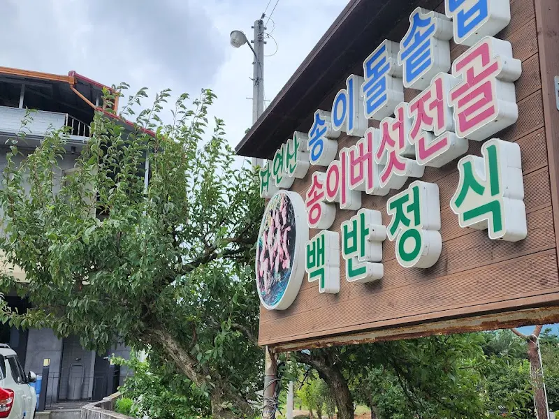 식당 건물은 널찍한 주차장을 품고 있어 편안하게 차를 댈 수 있었다. 건물 외관은 깔끔한 회색빛 석재로 마감되어 있었고, 큼지막한 통유리창 너머로 따스한 햇살이 쏟아지는 모습이 인상적이었다. 입구에 들어서자, 정갈하게 놓인 화분들과 은은한 조명이 편안한 분위기를 자아냈다. 벽면에는 메뉴 사진과 함께 ‘송이버섯전골’, ‘돌솥밥’ 등의 글씨가 큼지막하게 적혀 있어, 이 집의 대표 메뉴가 무엇인지 한눈에 알 수 있었다.