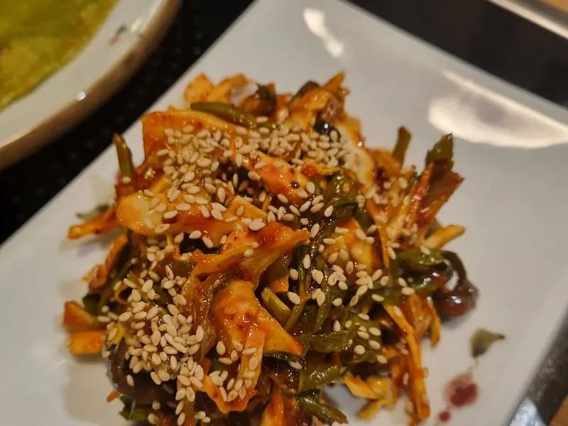 메인 요리인 황복불고기는 기대 이상이었다. 붉은 양념에 버무려진 복어는 윤기가 자르르 흘렀고, 매콤한 향이 코를 자극했다. 불판 위에 올려진 복불고기는 지글지글 소리를 내며 맛있게 익어갔다. 한 점 맛보니, 쫄깃하면서도 부드러운 식감이 입안 가득 퍼졌다. 매콤한 양념은 감칠맛을 더했고, 복어 특유의 담백한 맛과 어우러져 정말 훌륭했다.