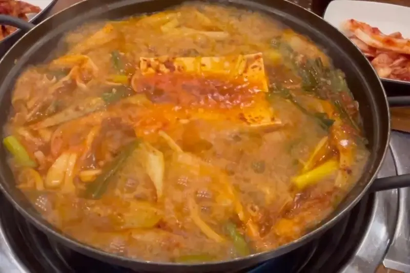7분 정도 기다리니, 찌개가 먹음직스럽게 끓어올랐다. 국자로 국물을 한 입 떠먹으니, 칼칼하면서도 깊은 맛이 입안 가득 퍼졌다. 돼지 특유의 잡내는 전혀 느껴지지 않았고, 오히려 깔끔하고 시원한 맛이 났다.