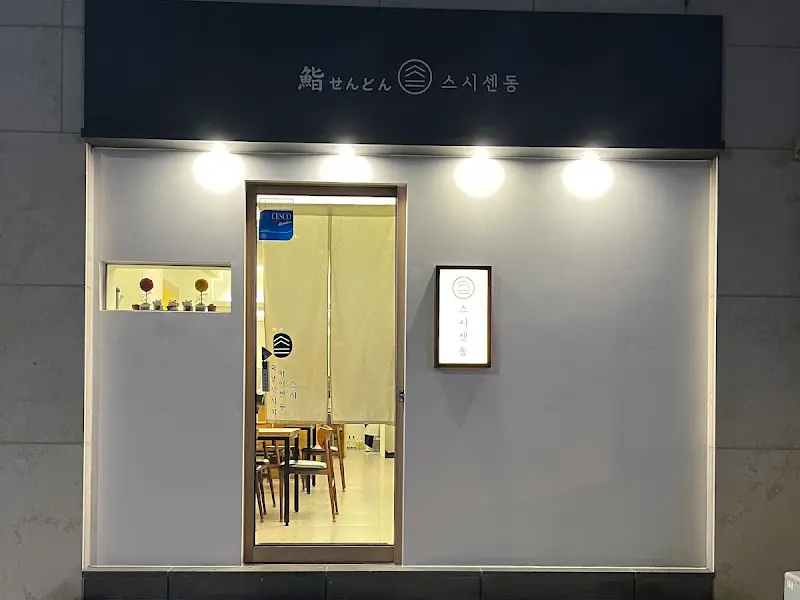 가게 앞은 생각보다 더 아담하고 단아한 모습이었다. 차분한 회색 톤의 외관에, 은은하게 빛나는 조명이 따스함을 더한다. 간판에는 정갈한 글씨체로 ‘鮨 せんどう 스시센동’이라고 적혀 있었다. 마치 일본의 작은 골목 어귀에 있을 법한, 그런 분위기였다. 하얀색 벽면에 걸린 액자는 가게의 분위기를 한층 더 고급스럽게 만들어준다.