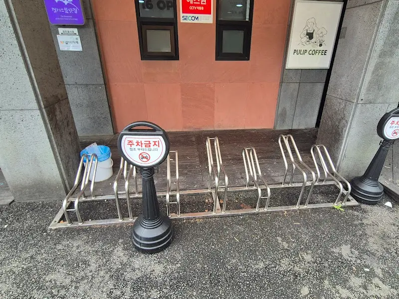 가게 앞에 다다르니, 낡은 듯 정감 있는 간판이 눈에 들어왔다. 털보네순대국이라는 상호와 함께 그려진 익살스러운 캐릭터는 왠지 모르게 푸근한 인상을 주었다. 에서 볼 수 있듯이, 2층에는 “PULIP COFFEE”라는 카페도 함께 운영되고 있어 식사 후 커피 한잔의 여유를 즐기기에도 안성맞춤일 듯했다. 가게 앞에는 잠시 자전거를 세워둘 수 있는 공간도 마련되어 있었다. 에서 보이는 자전거 거치대는 소소하지만 세심한 배려가 느껴지는 부분이었다.