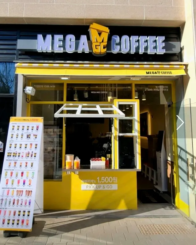 푸른 물결이 넘실대는 협재해수욕장을 향하는 길, 따스한 햇살이 쏟아지는 오후였다. 제주 여행의 설렘과 함께, 시원한 커피 한 잔이 간절했다. 해변 가까운 곳에 자리 잡은 메가커피를 발견했을 때, 마치 오아시스를 찾은 듯한 기분이었다. 노란색 간판이 멀리서도 눈에 띄어 찾기 쉬웠다.