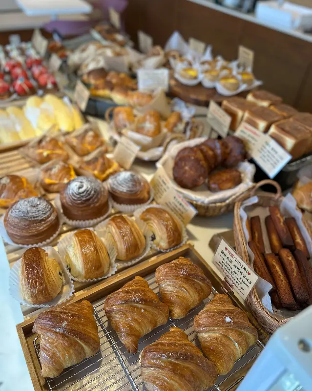 고소한 냄새에 이끌려 나도 모르게 진열대 앞으로 발걸음을 옮겼다. 갓 구워져 윤기가 자르르 흐르는 빵들은 하나같이 저마다의 매력을 뽐내고 있었다. 크루아상, 퀸아망, 치아바타, 포카치아… 종류도 어찌나 다양한지, 마치 빵으로 지은 아름다운 궁전에 들어온 기분이었다. 특히 붉은 딸기가 얹어진 페스츄리는 보기만 해도 입안에 침이 고였다.
