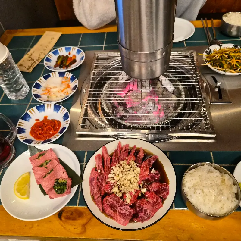 퇴근 후, 며칠 전부터 머릿속을 떠나지 않던 그곳, 짝귀 한우 마곡발산점으로 향하는 발걸음은 설렘으로 가득 찼다. ‘오늘만큼은 최고의 고기를 맛보리라’ 다짐하며, 지하철역에서 내려 은은한 조명이 새어 나오는 짝귀의 입구로 향했다. 문을 열자, 고급스러우면서도 편안한 분위기가 나를 맞이했다. 넓고 깔끔한 매장 안은 이미 맛있는 고기 냄새로 가득했고, 테이블마다 환하게 피어오른 숯불이 따뜻함을 더했다.