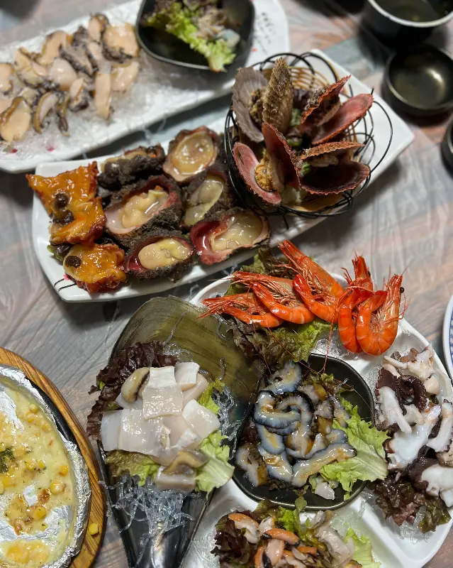 주차장에 차를 세우고 식당 문을 열자, 활기찬 기운이 물씬 풍겨왔다. 넓고 깔끔한 홀 안은 손님들로 가득했고, 테이블마다 싱싱한 해산물이 가득한 모습이 눈에 들어왔다. 창밖으로는 탁 트인 바다 풍경이 펼쳐져, 맛있는 식사에 대한 기대감을 더욱 높였다.